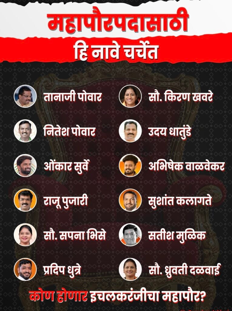 “कोण होणार इचलकरंजीचा महापौर?” हा प्रश्न आता सर्वसामान्य नागरिकांमध्येही चर्चेचा विषय ठरला असून अंतिम निर्णयाकडे सर्वांचे लक्ष लागून राहिले आहे.