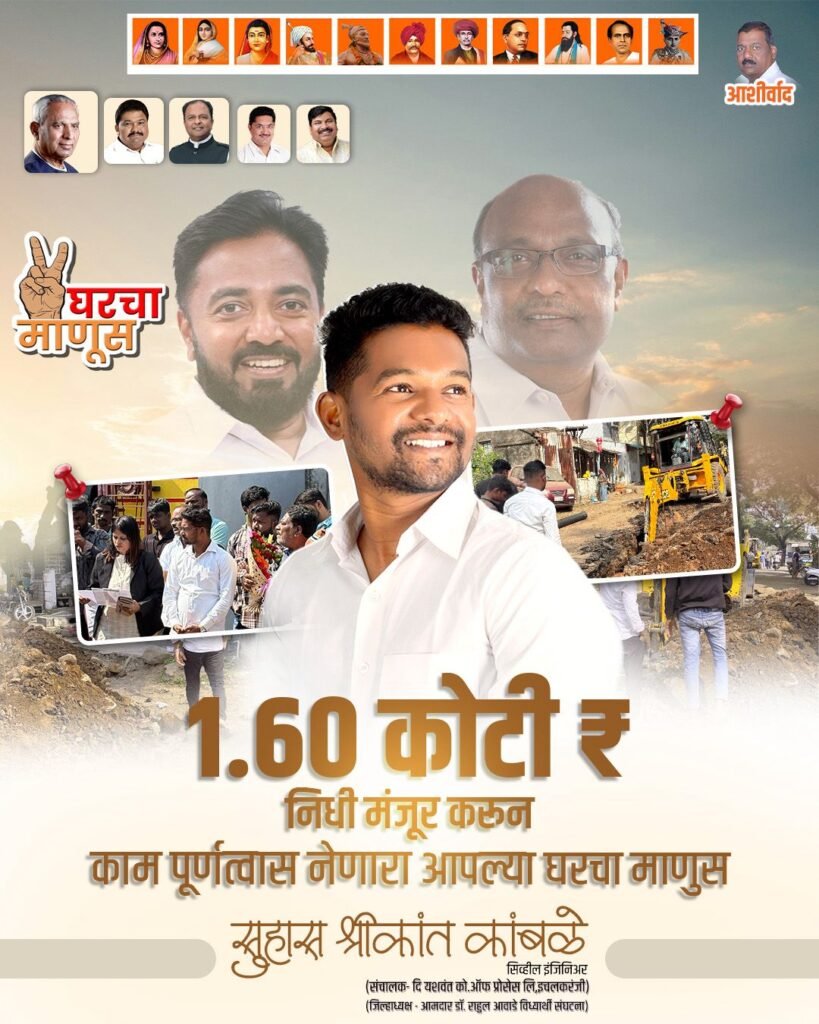 प्रभागातील रस्ते, पाणीपुरवठा, स्वच्छता, आरोग्य व युवकांच्या प्रश्नांवर लक्ष केंद्रित करत सुहास कांबळे यांनी व्यापक जनसंपर्क मोहिमेला सुरुवात केली आहे. त्यांच्या या सक्रिय भूमिकेमुळे प्रभागात उत्साहाचे वातावरण निर्माण झाले असून, नागरिकांकडून सकारात्मक प्रतिसाद मिळत आहे.