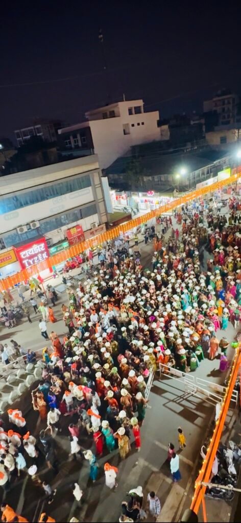 इचलकरंजी- प्रभाग क्र. 09 येथे आज दिनांक 9 डिसेंबर 2025 रोजी सायंकाळी पार पडलेल्या “१११११ दुरडी अर्पण भक्तीचा दिव्य क्षण” या भव्य धार्मिक सोहळ्याला महिलांचा उत्स्फूर्त प्रतिसाद मिळाला.
