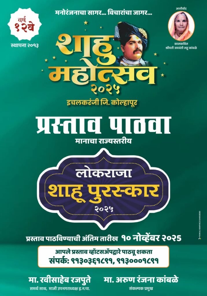सामाजिक, शैक्षणिक, कला, क्रीडा, सांस्कृतिक, उद्योग, लेखक, कवी, पत्रकार व इतर कोणत्याही योग्य अशा क्षेत्रात आपण चांगले कार्यरत असाल तर आजच आपले प्रस्ताव खाली दिलेल्या व्हाट्सअप नंबर वर पाठवा..